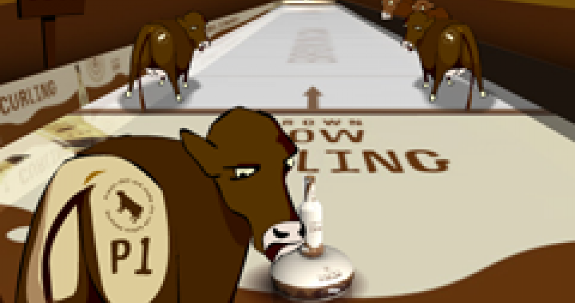 BROWN COW CURLING est un jeu arcade de curling mettant en vedette des vaches brunes pour faire la promotion d'un nouveau breuvage. Tu as seulement besoin d'avoir une connaissance de base du curling pour jouer.