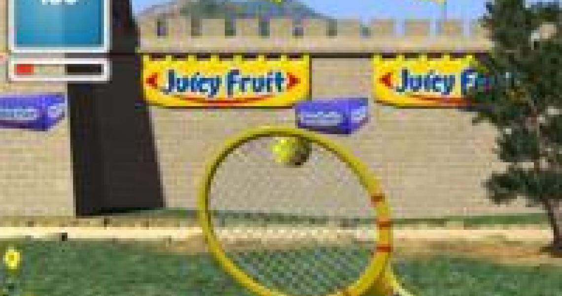 Lancez la balle en cliquant avec la souris, puis faite la rebondir sur le mur du château en déplaçant votre raquette avec la souris. Marquez des points en visant les paquets de « Juicy Fruit » qui se déplacent dans l’écran.